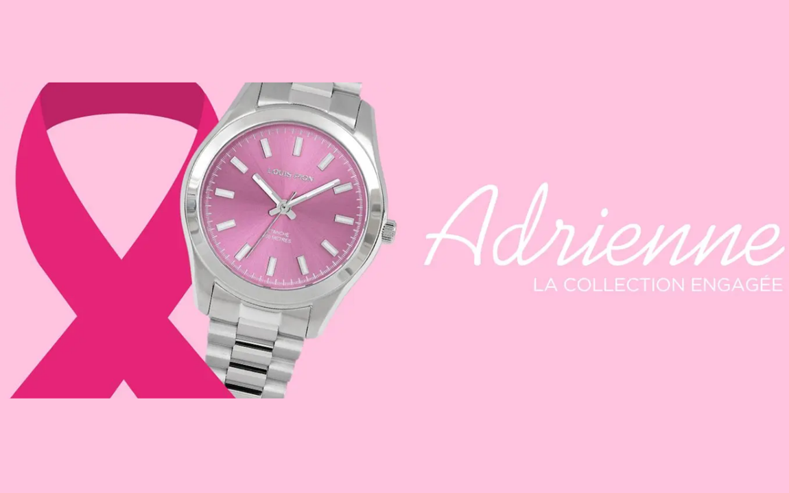 10€ reversés pour la recherche et le traitement du cancer en France, pour tout achat d’une montre de la collection Adrienne.
