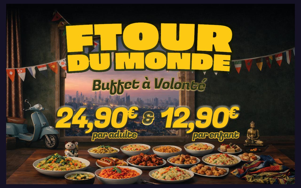 Cette année, nous proposons un buffet à volonté autour du concept « Ftour du Monde », avec une sélection de recettes inspirées des saveurs du monde tout en restant fidèle à l’ADN PB Poulet Braisé.