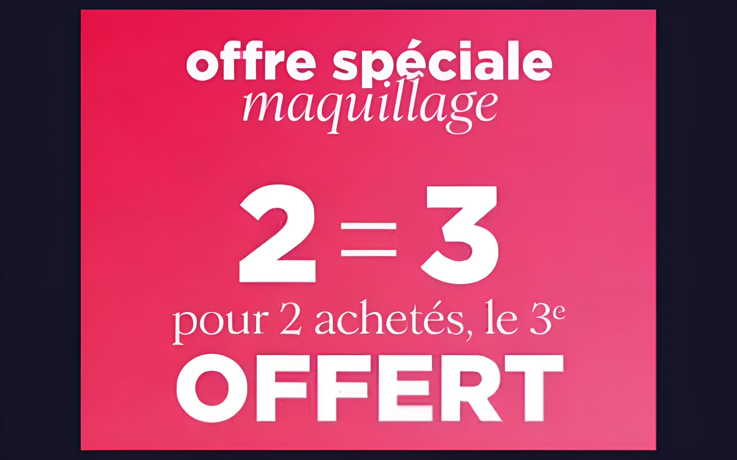 2 produits maquillage achetés = le 3ᵉ OFFERT*