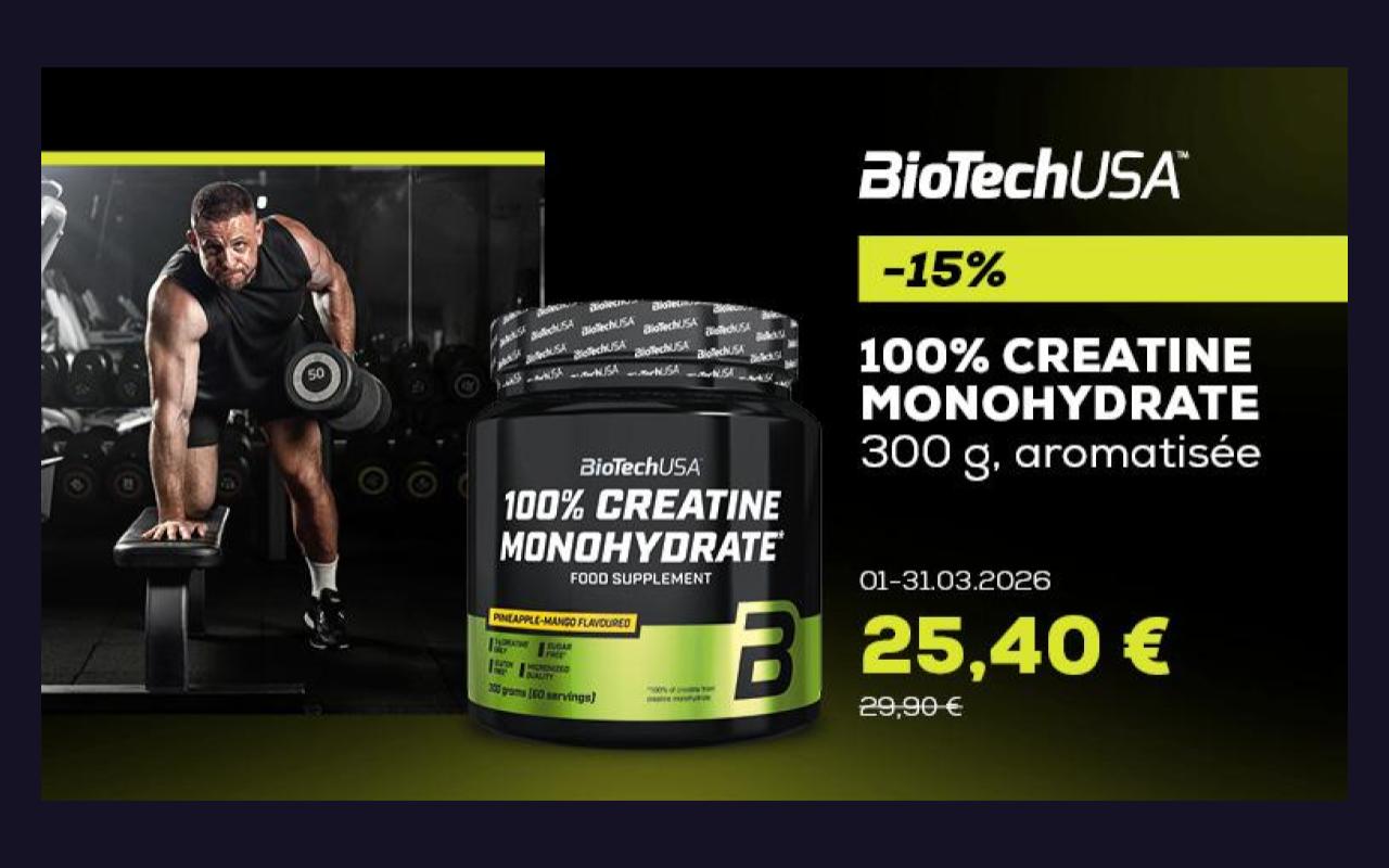 Offre valable seulement pour les clients inscrits au programme de fidélité de BioTechUSA, inscription gratuite.