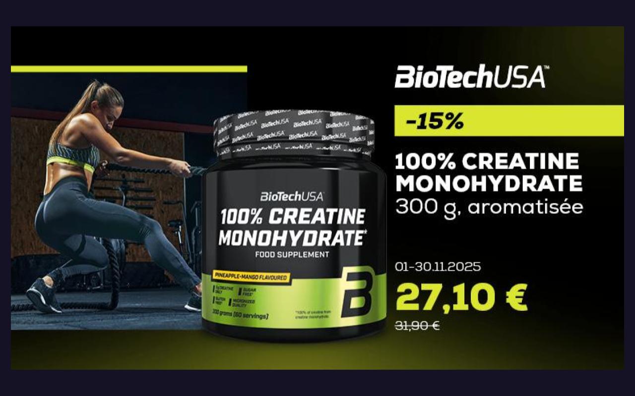 Offre valable seulement pour les clients inscrits au programme de fidélité de BioTechUSA, inscription gratuite.