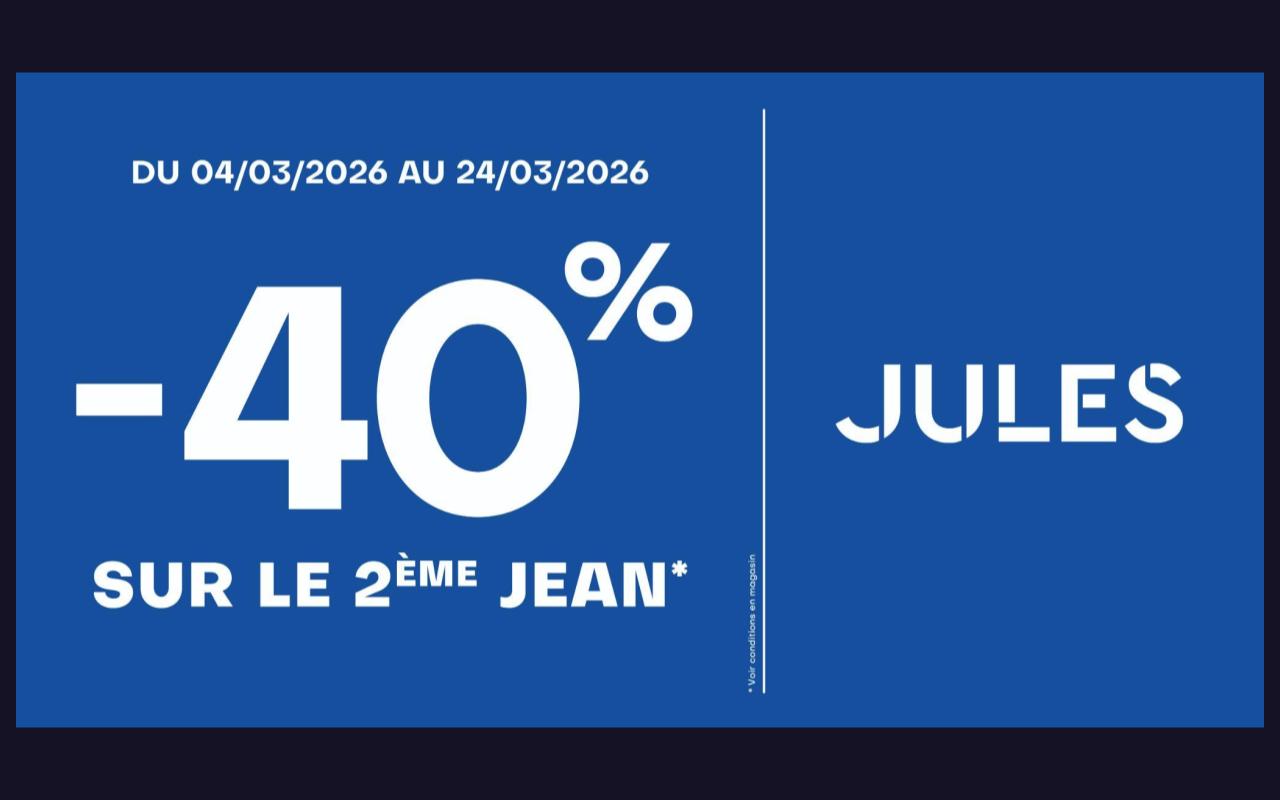 Non cumulable avec toutes autres promotions en cours (sauf les chèques fidélité du programme de fidélité JULES le Club).