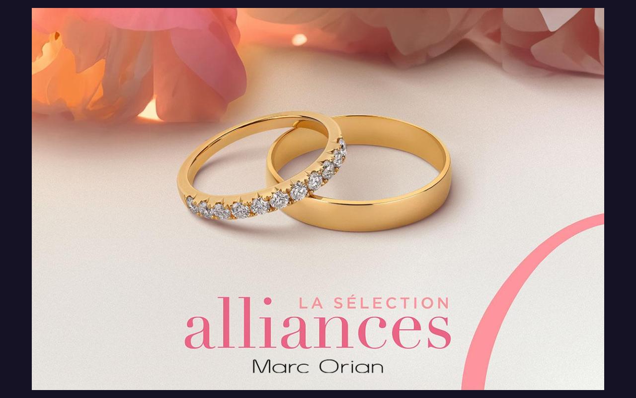* Pour l’achat simultané et définitif de deux alliances entre le 23 mars et le 7 avril 2026 dans les bijouteries Marc Orian, un bon d’achat de 20% TTC du montant total est offert.