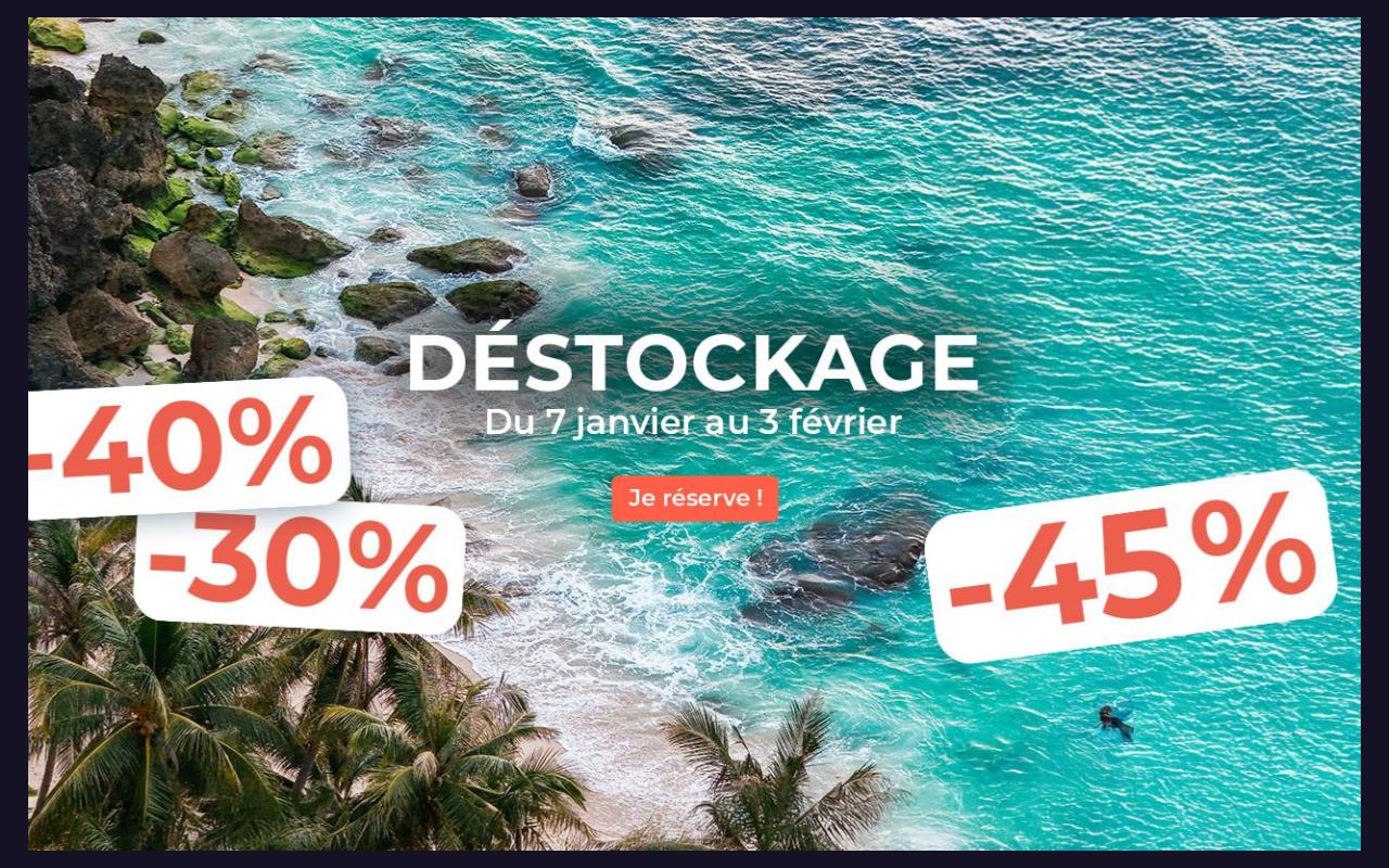 Évadez-vous sans vous ruiner grâce à nos offres déstockage exclusives du 03/01 au 07/02 !